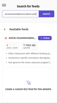 Once you have created your account, you can start adding feeds you want to subscribe to. You can do this by copying and pasting the URL of the feed into the search bar. In this example, we will use the article recommendations feed for @LSE_Angela's List of Preprints to Read