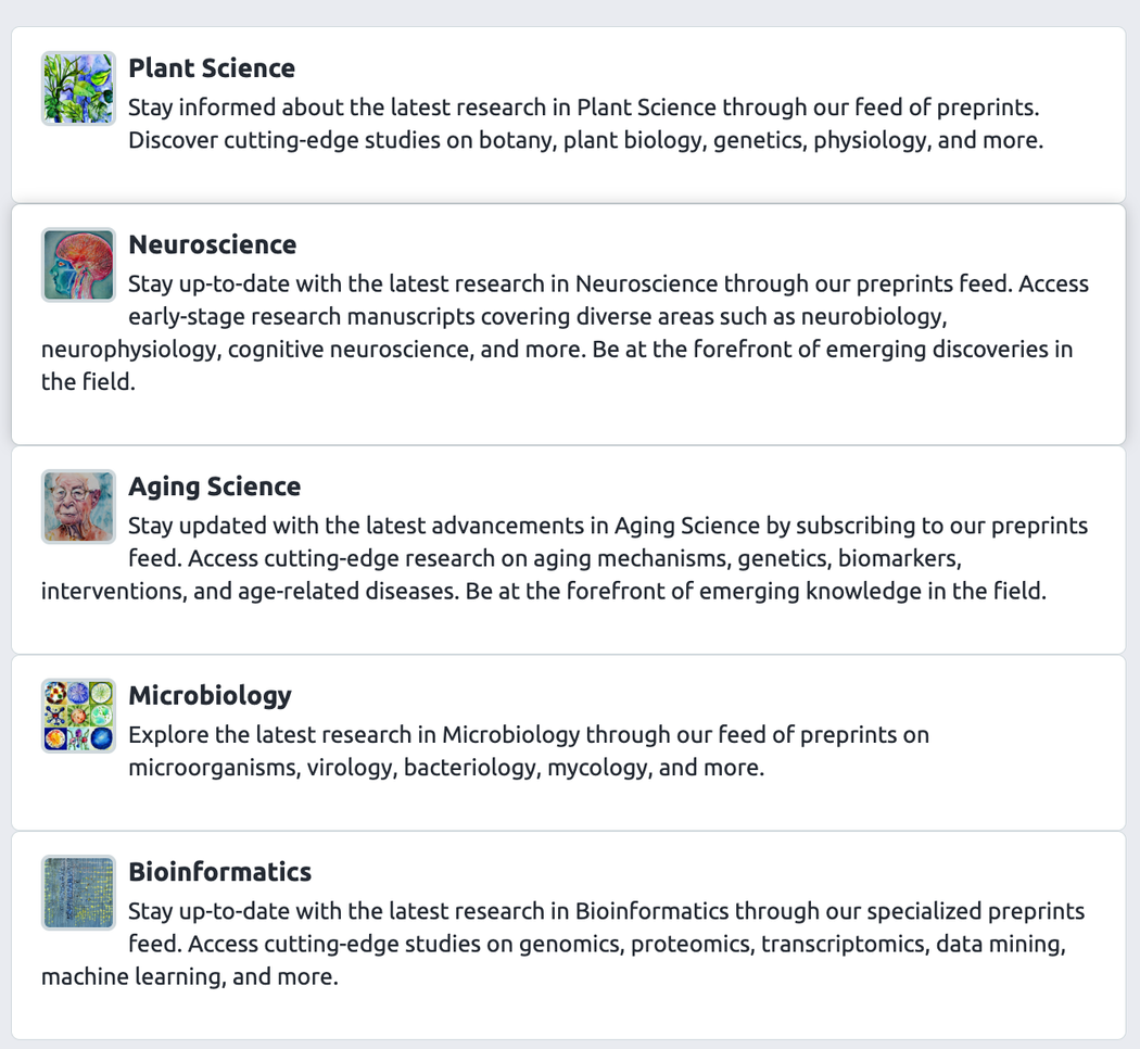 Using Sciety Labs, you can view subject curated feeds, create your own feed of preprints or subscribe to updates from any List on Sciety and we'd love to hear if this helps you in your preprint and research discovery.