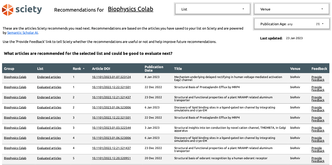 - Our AI assisted Smart Article Recommendations continue to prove useful in a number of ways, from helping people choose what to evaluate next, to contacting authors of articles about their work.