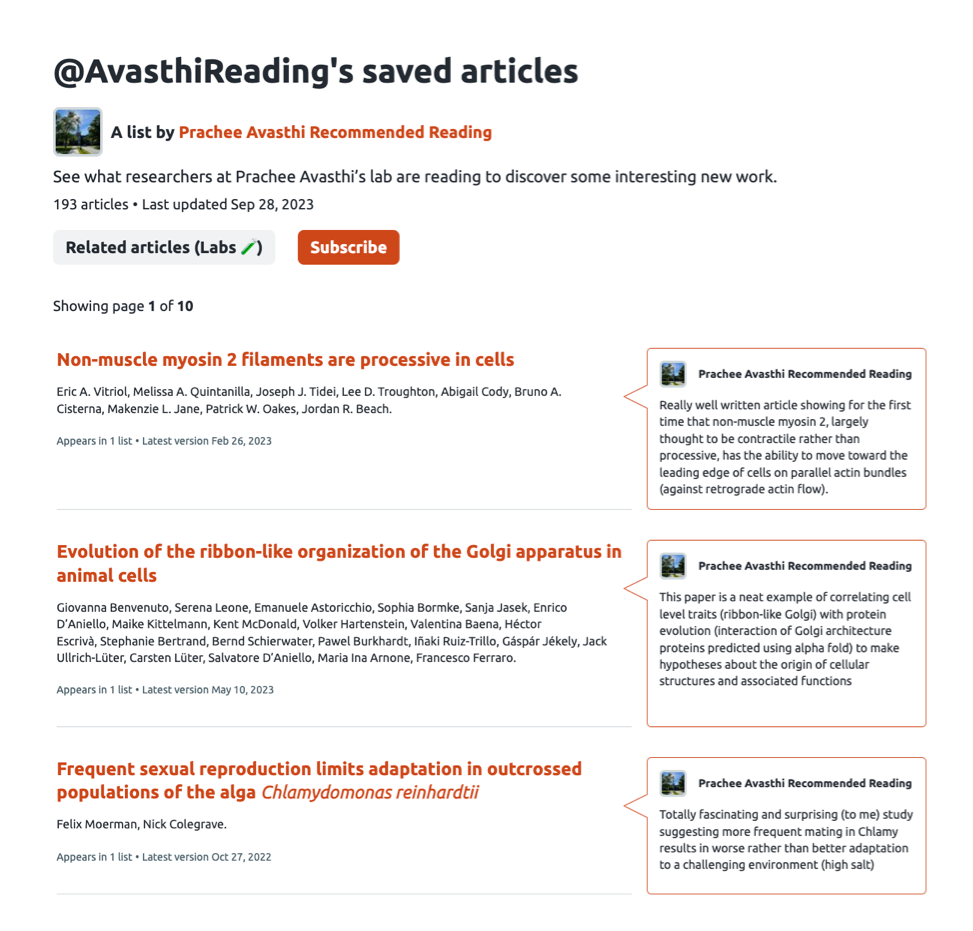 On Sciety, people do this by creating lists of articles and adding comments to their list to show why a reader might find the article useful. Some users and groups create reading lists for labs or for peer review clubs, and with our AI-powered “related-preprint engine”, Sciety shows them new and interesting articles based on their lists.